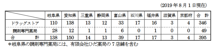 中部薬品の8月1日付けの高山市内の事業所は11店舗、飛騨市では4店舗、また岐阜県内の事業所は138店舗となる。