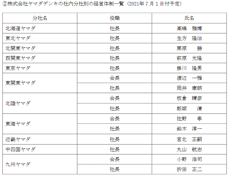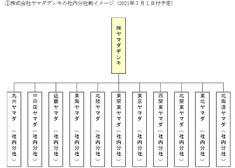 家電セグメントの合併によって、子会社のもつノウハウ・経営資源を集約する。新たな11の地域区分による社内分社制を導入し、営業面や業務処理面でさらに効率性を高めていく。