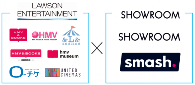 具体的には、ローソンをはじめ、ローソンエンタテインメントグループの運営する「HMV&BOOKS」や「HMV」「ユナイテッド・シネマ」などのリアルな店舗・劇場に加え、チケッティングサービス「ローソンチケット」、EC サイト「HMV&BOOKS online」、ライブコマースサービス「&L&(アンドランド)」などのネットサービスを通じて、SHOWROOM の運営する「SHOWROOM」や「smash.」のオリジナルグッズの企画・制作、店頭やネットでの販売、各種イベントの開催などの取り組みを行っていく。