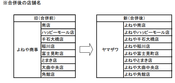 流通スーパーニュース > M&A > ヤマザワnews|3/1よねや商事を吸収合併/店舗名はヤマザワ ヤマザワnews|3/1よねや商事を吸収合併/店舗名はヤマザワ M&A / 2023年03月02日 ツイート (株)ヤマザワ(山形県山形市、古⼭利昭社長)は2023年3月1日付で連結子会社であるよねや商事(株)(秋田県横手市)を吸収合併した。 合併目的について、ヤマザワでは「経営資源の集約、業務の効率化を図ることにより、さらなる地域社会の食生活の向上に貢献すること」としている。合併後は、ヤマザワが存続会社となり、よねや商事の事業を継続する。 ツイート
