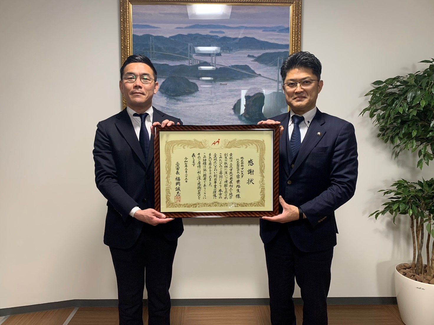 また事業会社(株)フレスタ(谷本満社長)は三次市が行う、地方創生応援税制(企業版ふるさと納税)として、三次市の「第2期三次市まち・ひと・しごと創生総合戦略の取組のうち、新たな「ひとの流れ」をつくり、地域人材を育てる、定着と関係づくりの促進事業」に賛同し、1月31日に300万円を寄付している。
