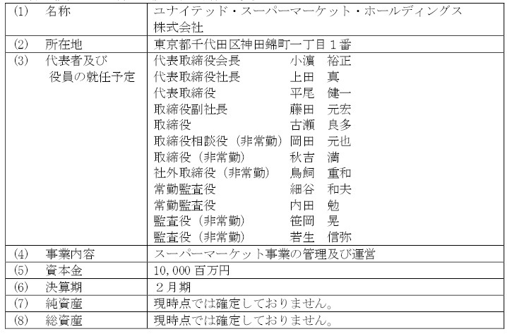 6.「ユナイテッド・スーパーマーケット・ホールディングス」の株式は東京証券取引所に新規上場申請を行う予定のため、事業会社の2月に上場廃止となる見込み。