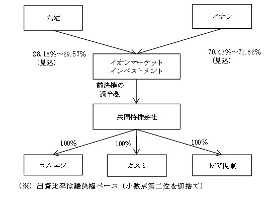 5.持ち株会社のイオンマーケットインベストメントはイオンの連結子会社、丸紅の持ち分法適用関連会社となる。
