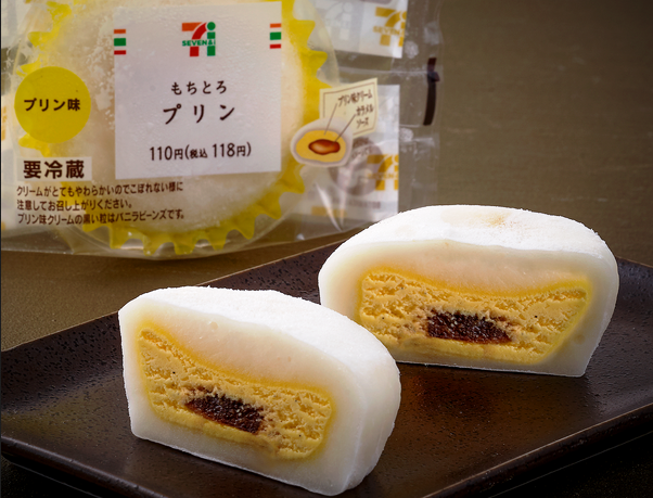 「もちとろ プリン」は、人気の「もちとろ」シリーズの新アイテム。プリンを合わせた和洋折衷スイーツ。こだわり卵「エグロワイヤル®」を使用したとろけるプリン味のクリームと、ほろ苦いカラメルをもち生地で包み込んだ。118円。