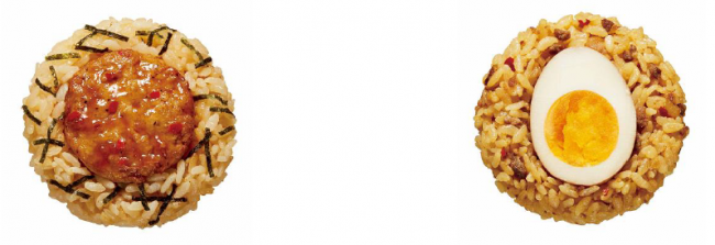 「味玉おにぎり」(160円:写真右) は、麺屋こころ名物のしめ「追い飯」をイメージしたおにぎり。ピリ辛の肉そぼろを混ぜ込んだ濃い目の味付けご飯に、醤油で煮込んだ玉子1/2個をトッピングした。