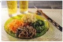 リニューアルした「彩りナムルセット(中)」(198円)は、ほうれん草、ぜんまい、もやし、大根をナムルに仕上げた。1/3日分の野菜を摂取することができる。