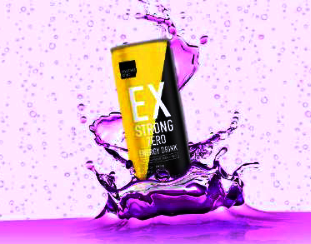 「EXSTRONG ENERGY DRINK」は、缶と中身の液色のギャップが特徴だ。2018年2月20日にSNSで話題になり、販売本数が大きく跳ねた。第一弾は缶色がオレンジ、液色がグリーンだったが、新商品は、缶色がイエロー、そして液色をパープルに仕上げている。
