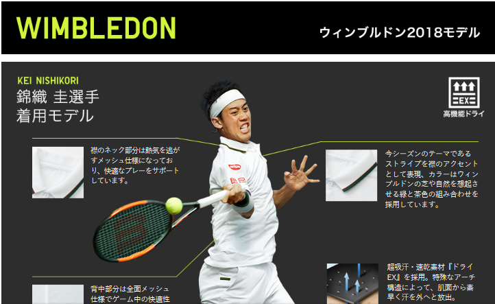 (株)ユニクロ(山口県山口市、柳井正会長兼社長)は、2018年7月2日(月)から始まる「全英オープンテニス2018(ウィンブルドン選手権)」で、男子プロテニスプレイヤーの錦織圭選手が着用するゲームウエアなどのアイテムを、6月25日(月)からユニクロ一部店舗とオンラインストアで販売を開始した。