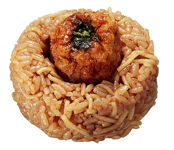 たこ焼そば飯おにぎり(108円)は、そば飯を使用した。たこ焼にはマヨソースで味付けした。