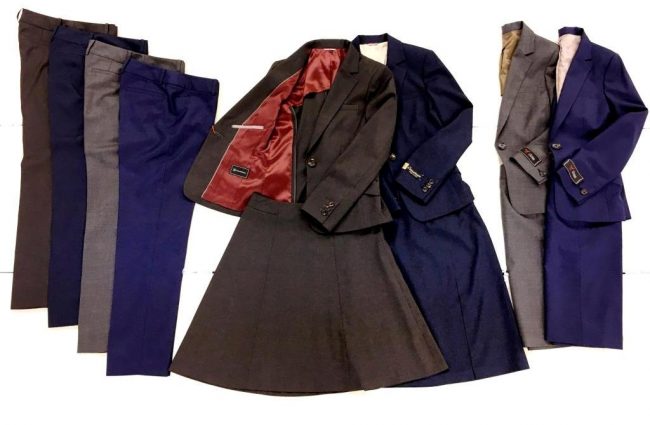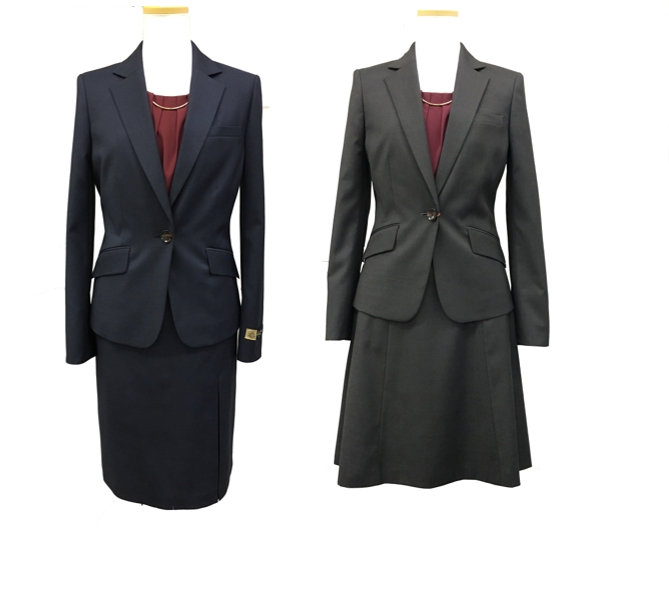 「YUNSAセットアップ」は、東欧の大手生地メーカーの「YUNSA」社の素材を使用して、高級感のある艶と鮮やかな色味が特徴だ。ボトムスは、ヒップ周りがすっきり見えるタイトスカートと脚のラインがキレイに見える細身の9分丈テーパードパンツがある。価格は、ジャケットが2万2000円(税抜、以下同)、パンツが1万2000円、スカートが1万1000円。サイズは、5,7,9,11,13号の5サイズ、カラーは ネービー、グレーの2色展開。