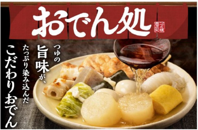 2018年おでんは三つの改良がなされている。一つは、つゆの製法。強い香りが特徴の焚き納屋(たきなや)式焙乾の焼津産鰹節と、低温長時間と高温短時間の2種類の抽出方法で北海道産真昆布の旨味を引き出したつゆが特徴だ。全国を7地区に分けて展開する。