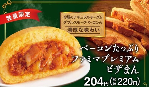 「ベーコンたっぷり ファミマプレミアムピザまん」(本体価格204円)は120万食限定の販売。