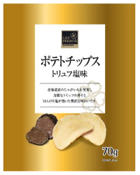 商品は、北海道産の品質の良い馬鈴薯だけを使っている。シーズニングがフラット形状より付着しやすいギザギザ状の断面にして、トリュフ塩味をより味わえるようにした。塩はポテトチップスに絡みやすい粒度のものを使用している。