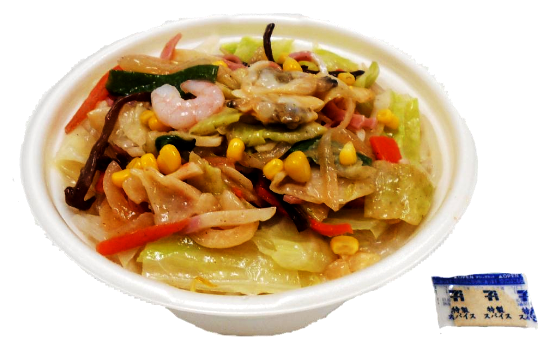 「魚介の旨味広がる まろやかちゃんぽん」は税込み550円(以下同じ)。この1品で1日に必要な野菜の2分の1の量を摂れる。本場長崎中華街のちゃんぽんをイメージした。鶏肉の旨味と鶏ガラスープがベースだが、あさりの煮汁も加えてあるので海鮮の旨味も感じられる。