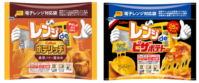 (株)ファミリーマート(東京都港区、澤田貴司社長)は、ファミマ限定商品として、袋に入れたまま電子レンジで温めることができるポテトチップス「レンジdeポテリッチ 濃厚バター醤油味」(本体価格141円)を2月19日(火)から、「レンジdeピザポテト」(同161円)を3月12日(火)から、全国約1万6700店舗で展開する。