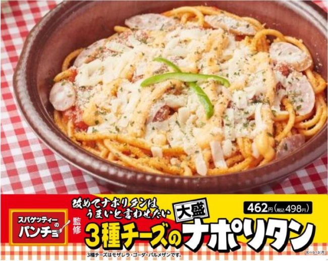 (株)ファミリーマート(東京都港区、澤田貴司社長)は、4月9日(火)から、B級グルメ研究所が運営する飲食店「スパゲッティーのパンチョ」の監修商品第2弾「パンチョ 3種チーズの大盛ナポリタン」税込498円を発売する。ただしエリアは絞られている。関東甲信地方と大井川以東の静岡県に展開しているファミリーマート約6100店。