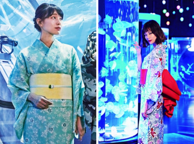 右は〈撫松庵〉婦人仕立上りゆかた4万1040円。二部式帯リボン4万8600円。素材はゆかた、帯ともにポリエステル100%。伊勢丹限定商品。