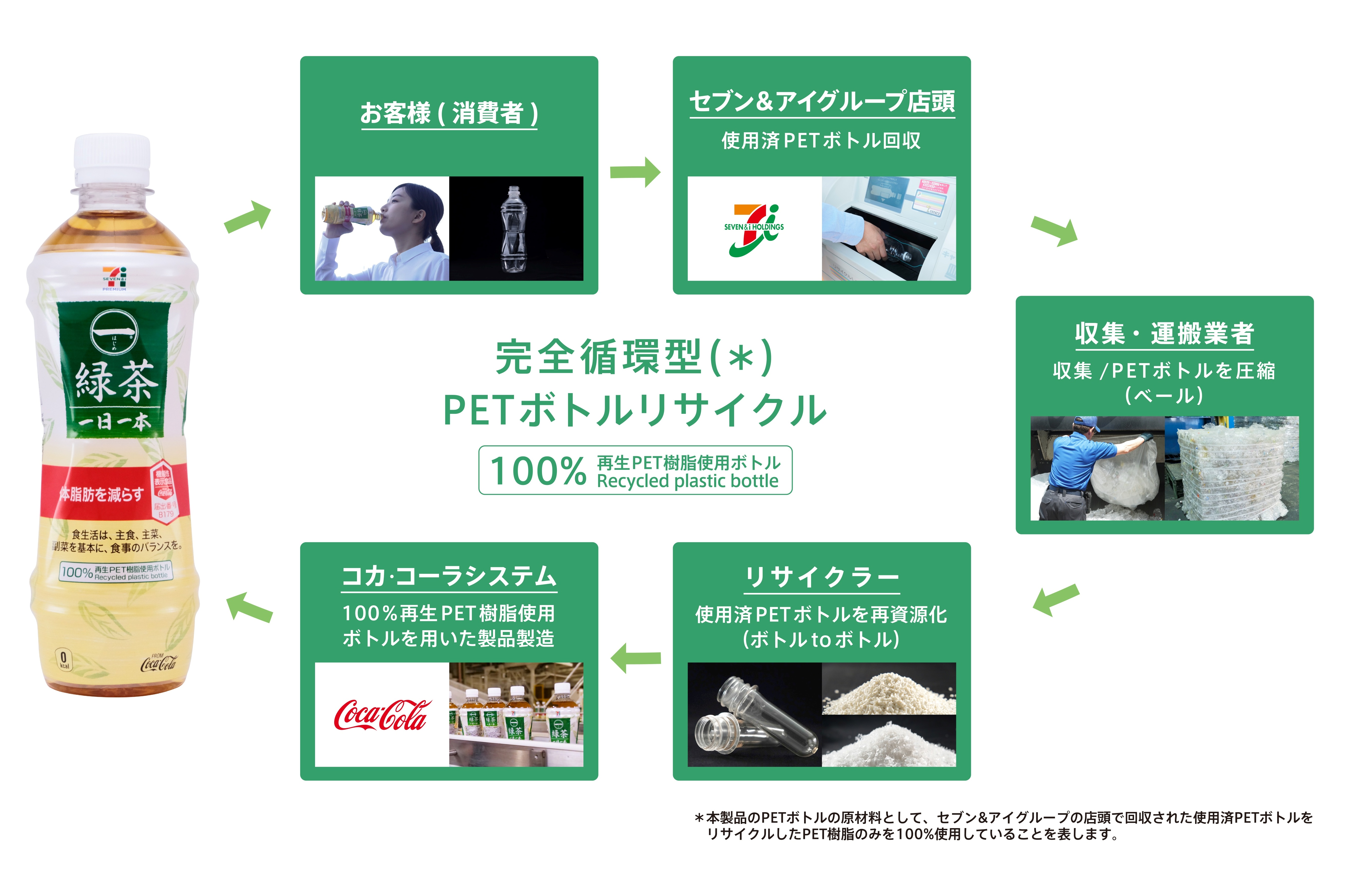 特定の流通グループの店頭で回収したペットボトルを100%使用した原材料を用いて、再び同一の流通グループにおいて商品として販売する取り組みは世界で初めてのことだ(2019年6月5日時点。日本コカ・コーラおよびセブン&アイ・ホールディングス調べ)。これを「完全循環型」と呼んでいる。