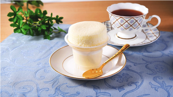 追加される「まっ白ミルクのスフレ・プリン」は、北海道産牛乳を使用したミルクプリンに、焼き色がつかないように白く焼き上げたミルクスフレを乗せ、その間には、ホイップクリームと練乳ソースを挟んである。