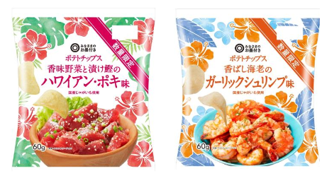 合同会社西友(東京都北区、リオネル・デスクリーCEO)は、7月8日(月)から、プライベートブランド「みなさまのお墨付き」のポテトチップスに、ハワイアンテイストの「ポテトチップス香味野菜と漬け鰹のハワイアン・ポキ味」「ポテトチップス香ばし海老のガーリックシュリンプ味」を投入する。全国の店舗で数量限定で展開する。