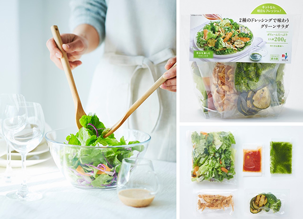 「作るを楽しむSALAD」シリーズはサラダを「作る」時間を楽しみながら、誰でも簡単につくれるサラダキット。2018年6月から限定店舗で販売してきたが、全国のRF1とグリーン・グルメの全店で扱う。