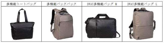 ビジネスバッグは、通勤に適した機能性と、トレンドの霜降り効果のある杢調生地を使用するなどのデザイン性を両立させた商品。トートバッグ(税込価格4990円、以下同)、バックパック(5990円)、3WAY多機能バッグ(Mサイズ5990円、Lサイズ6990円)の4種類。すべてのバッグでパソコン収納に対応するポケットを装備している。カラーはそれぞれブラックとダークグレーの2種類だ。