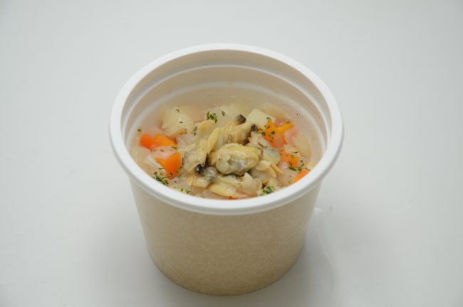 具だくさんスープは、弁当やおにぎりと組み合わせた昼食として、スナック食や夜食として、利用されるシーンは幅広い。また野菜をたっぷり摂取できるため健康ニーズにも対応している。お盆を過ぎていよいよホットメニューの展開が本格化する。