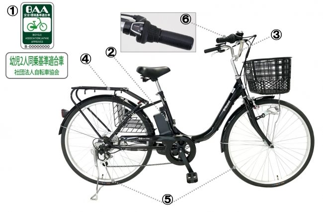 D-Assistは自転車安全基準BBA(BICYCLE ASSOCIATION(JAPAN)APPROVED)に適合し、幼児2人を同乗させることができる。フル充電した場合は最大約40㎞の走行が可能だ。また、錆びにくいステンレスハンドルを使用し、27kgパイプキャリア搭載でチャイルドシートの取り付けもできる。肉厚チューブ、耐摩耗タイヤに加え、外装6段ギアを搭載して坂道などの走行をサポートする。