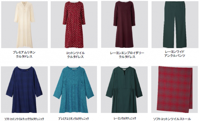 価格はチュニックが2990円(本体価格、以下同じ)と4990円の2種類、ドレスが3990円と4990円の2種類、パンツが2990円、ストールが1500円。