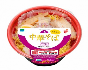商品は鹿児島市のラーメン店「Sakanoue Unique(サカノウエユニーク)」が監修した調理麺「中華そば」(税込価格498円、以下同)、弁当「ユニーク丼(炒飯&唐揚)」(480円)と、日置市のチーズケーキ店「enne THE CHEESECAKE SHOP(エンネチーズケーキショップ)」が監修したチルドデザート「バスクチーズケーキ」(280円)、パン「クッキーチーズデニッシュ」(145円)の4品だ。