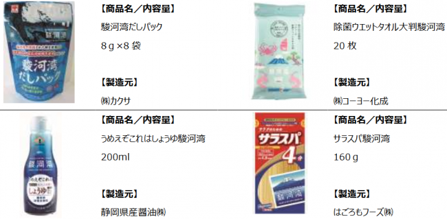駿河湾は2016年11月に「世界で最も美しい湾クラブ」に加盟した。これを機に、駿河湾の環境保全と認知度向上を目的として、サッポロビールとの共同開発商品、生ビール黒ラベル「駿河湾缶」を発売。これが駿河湾商品開発の発端だ。現在、趣旨に賛同する取引先は21社となり、累計32種類の「駿河湾デザイン商品」が発売されている。地産地消の取り組みでもある。