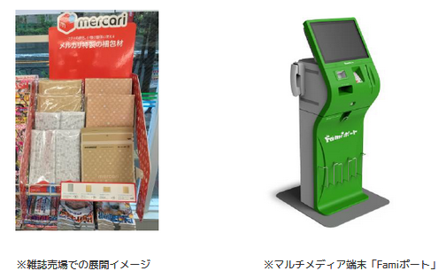 ファミリーマートでは、2016年3月から「らくらくメルカリ便」の発送をマルチメディア端末「Famiポート」で扱い、発送拠点の役割を担ってきた。梱包資材が発送拠点で手に入ることで、「メルカリ」利用者の利便性が高まる。