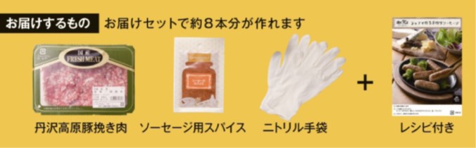 第1弾商品として、10月28日(木)から「ラップで作る手作りソーセージ」の販売を開始し、毎週新商品を販売していく。