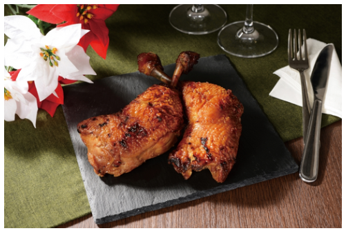「黄金チキン ローストレッグ」は、ドラム部分は骨付きで持ちやすくしてあるが、上もも部分の骨は抜いている。そのままかぶりつくことができ、子どもから年配者までが食べやすい形状に仕上げた。照り焼きダレでシンプルな味付けのチキンを、炭火で香ばしく焼き上げている。税込み価格298円。