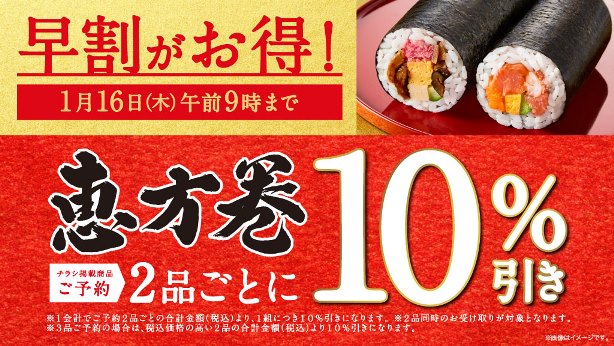 (株)ファミリーマート(東京都港区、澤田貴司社長)は、2020年の節分の日に向けた「恵方巻」予約の受け付けを、12月16日(月)10時から全国のファミリーマート約1万6500店で開始する。