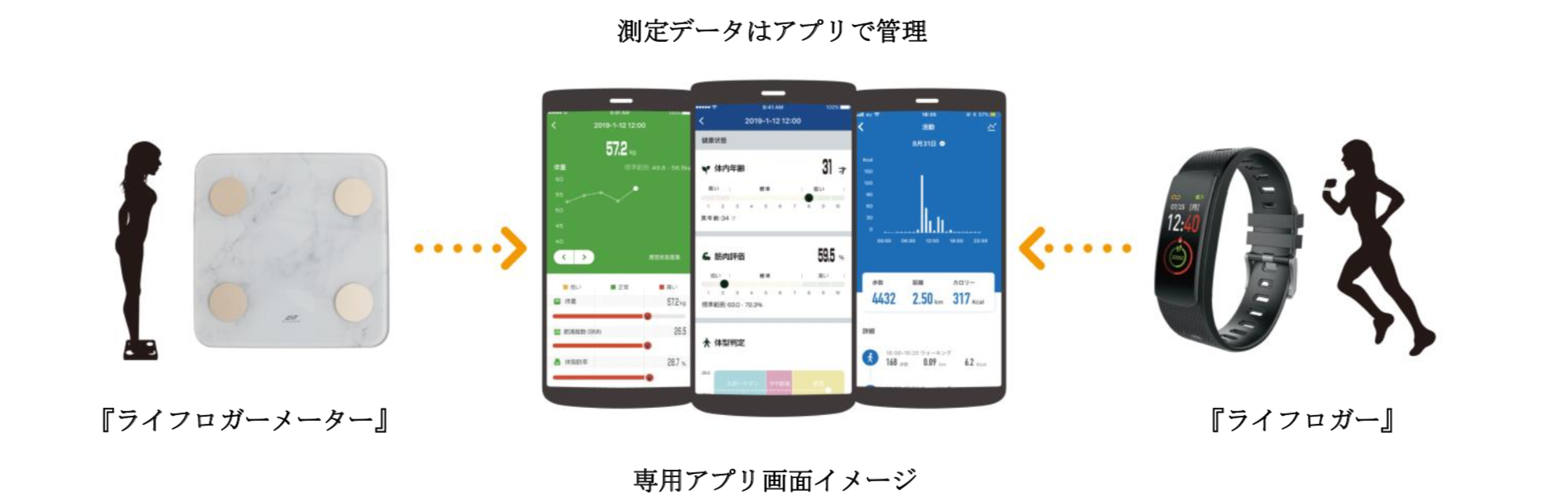 また、別売のスマートウォッチ「ライフロガー」と併用した場合、歩数や距離、消費カロリーなどのデータも、同専用アプリで一元管理できる。