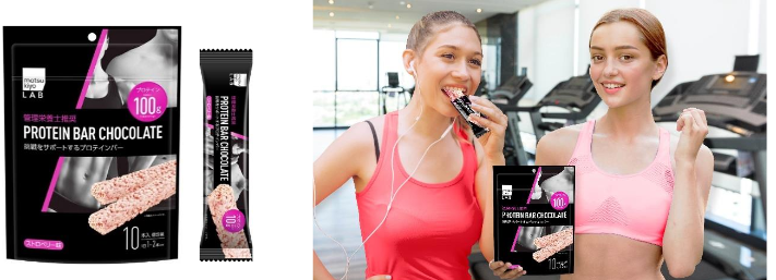 価格は税抜きで999円(10本で270g)。2019年10月に発売した「matsukiyo LAB プロテインバーチョコレート 10本入り」は発売後20日で、マツモトキヨシにおける「栄養ブロック食品」カテゴリー内1位の売上高を記録した。今回は、matsukiyo LAB アスリートラインのさらなる充実をはかるため「ストロベリー」の新フレーバーを追加した。