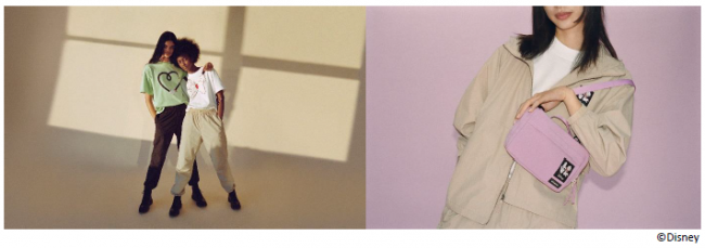 このコレクションはYOON氏がミニーマウスの魅力を再解釈して表現し、それを商品化している。すべてのアイテムに、ミニーマウスの手でデザインした「LOVE」のグラフィックを配したり、ミニーマウスのリボンはオリジナリティのある2トーンの配色で表現したりと、遊び心のあるコレクションとなっている。