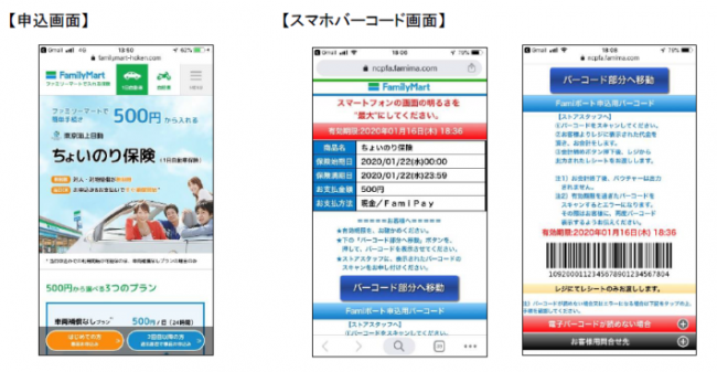 同社が取り扱う「ちょいのり保険」は、事前に専用WEBページから必要情報を登録し、現金かfamiPayで保険料を支払う。証書の手渡し等もなく、ペーパーレスかつスピーディに保険に加入することができる。また、ファミリーマートでの保険販売では初めてFamiPayでの支払いが可能となった。これによりストアスタッフのオペレーション負荷削減につながる。
