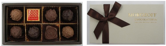 「モロゾフ ショコラテリア トリュフアソートメント」はモロゾフのトリュフチョコレートに、セブン‐イレブン限定のアーモンドクランチ入りミルクチョコレートを組み合わせたアソートメント。さらに、ウイスキーやラムなどの本格的なトリュフチョコレートとプレーンチョコレートのこの詰合せは、セブン‐イレブンだけの限定仕様。(852円)。