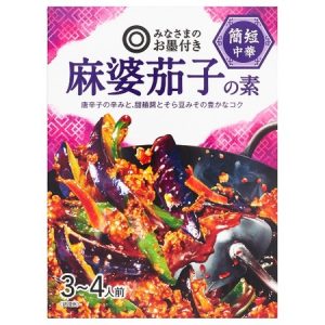 「簡短中華 麻婆茄子の素」は、唐辛子の辛さ、甜麺醤とそら豆みそのバランスに工夫を凝らした、コクが味わえる麻婆茄子の素。支持率は92.6% (3~4人前 94円)