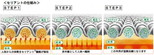 この商品にはアメリカの「ホロジェニックス(HOLOGENIX)社」が開発した新素材「セリアント(CELLIANTⓇ)」が使用されている。ポリエステルをベースにポリウレタンやレーヨン、綿を織り込んだ繊維にチタン、アルミなど13種類の鉱石が練りこまれている。イオンは日本企業として初めてこの素材を使用する。就寝中だけでなく、ルームウエアやインナーとして日中も継続的に着用することで疲労回復、血行促進、筋肉疲労の軽減などの効果が期待できる。洗濯をしても効果が薄れることはない。