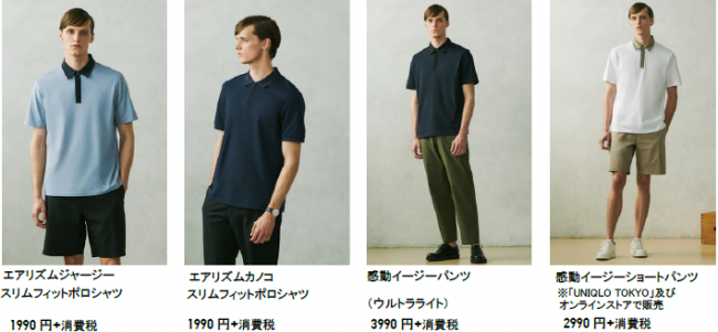 メンズウエアにはユニクロを代表する革新的な「感動パンツ」に、リラックス感のあるシルエットを加えてよりカジュアルに仕上げた「感動イージーパンツ」が登場する。また、エアリズムの快適な着心地と細身でスタイリッシュなデザインを兼ねそなえたポロシャツは、ビジネスからオフまで幅広いシーンで活躍しそうだ。