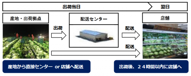 群馬県や長野県の高地で育てられたレタスは、産地から直接同社のセンターや店舗へ配送される。みずみずしくて “シャキッ” とした食感が特長のレタスを、冷えたまま、できるだけ速やかに店頭に並べる。ソーシング活動の基本だが、この基本は一歩一歩進めるしか定着するものではない。