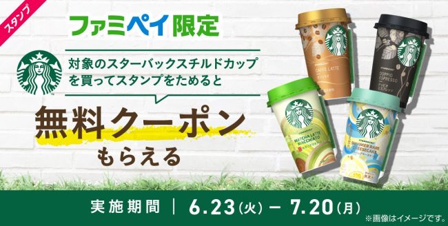 また、初のファミリーマート限定商品の発売を記念して、同日から7月24日(金)までの期間、「ファミペイ」のスタンプキャンペーンを実施する。対象商品を1点購入ごとにスタンプが1個を付与し、スタンプ5個がたまるとスターバックス チルドカップ各種いずれか1点の無料クーポンと交換できる。