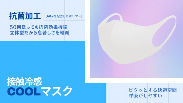マスクは抗菌加工で50回洗っても抗菌効果が持続するという。また立体型だから息苦しさを軽減できる。