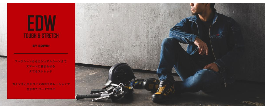 EDWは2019年10月12日(土)に、カインズとエドウインがコラボレーションして販売を開始した、オリジナルワーキングウェアブランドだ。EDWINならではのデニム素材を活用したジャケットやカーゴパンツを始め、Tシャツやポロシャツなどを幅広くラインアップしている。