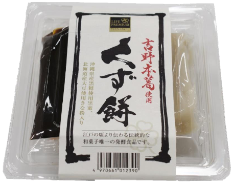 (株)ライフコーポレーション(東京都台東区、大阪市淀川区、岩崎高治社長)はプライベートブランド「ライフプレミアム」から「吉野本葛使用くず餅」を販売した。ライフプレミアムは素材、製法にこだわり、おいしさを追求した上質ブランド。
