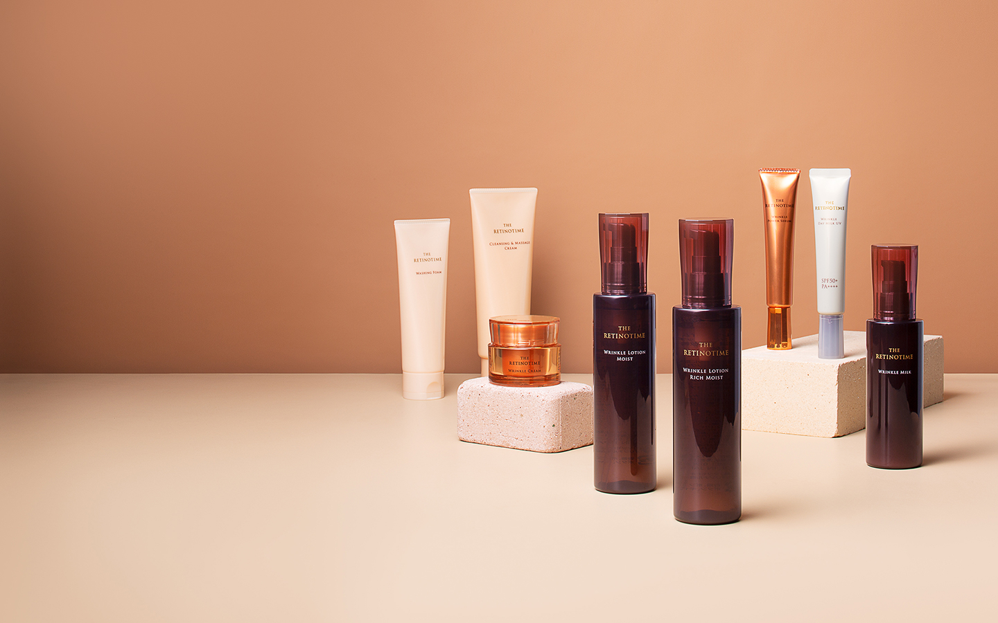 「ザ・レチノタイム」スキンケアシリーズはエイジングケアに特化したPB(プライベート・ブランド)。「シワ改善。うるおいのその先へ、ハリ・ツヤまとう」をコンセプトとして、クレンジングから乳液までのベーシックケア商品と、美容液・クリームといったスペシャルケア商品などまで、幅広く展開している。