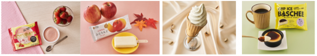 商品は、フランス産発酵バターを使用したバターアイスに苺をあわせた「コクバタアイス いちご」268円(税込み、以下同)、山形県産ふじりんごの果汁と果肉を使った「日本のフルーツ 山形県産ふじりんご」185円、ピスタチオの濃厚な味わいと香りが楽しめる「濃厚ピスタチオワッフルコーン」298円と、シリーズ累計約5500万個を販売するオリジナルスイーツ「バスチー」の味わいをアイスで再現した新作「カップアイスバスチー」214円の4品。
